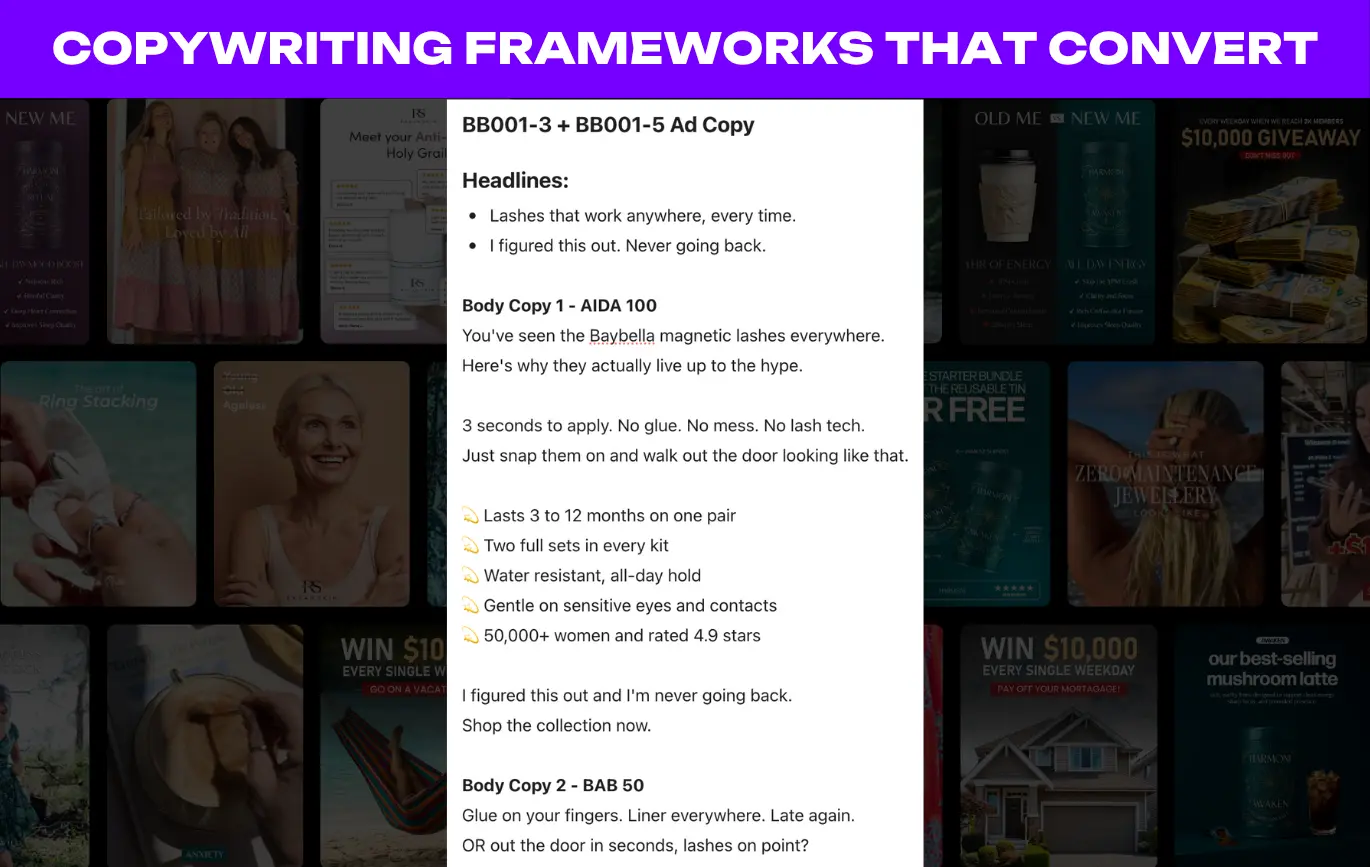 We produce a high volume of diverse ad creative every week including AI UGC, static ads, video edits, and creator-sourced UGC. Creative is built to test fast, identify winners, and scale what works.